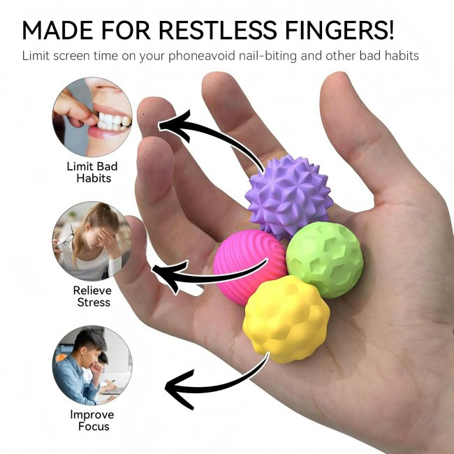 Four Unique Textured Surfaces: Each ball offers a distinct tactile experience to simulate different massage motions, enhancing sensory stimulation.